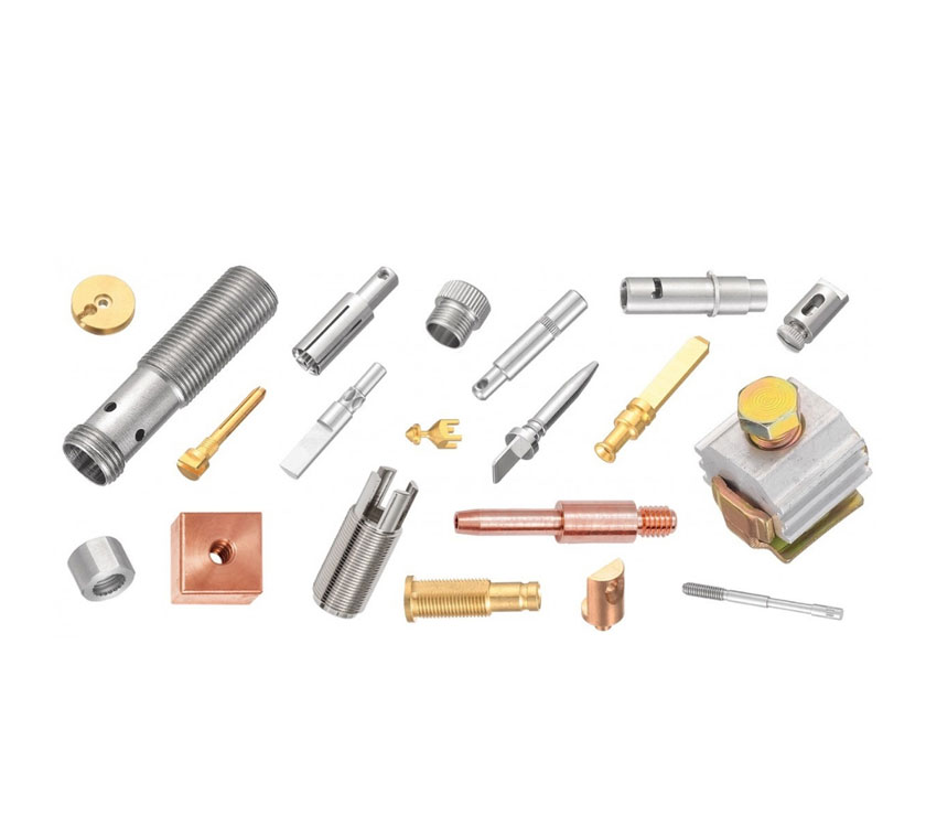 Parts: Pins, motor shafts, sliding bushes, terminals, sealing screws, fittings, magnetic cores, rollers, spacers, threading studs, nuts, bolts, flanges, tide-rods, piston shafts, shanks, washers, clamps.